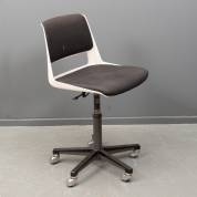 Bureaustoel op grijze stalen poot, de witte kunststof kuip met zwarte wollen bekleding, model 2712, ontwerp André Cordemeyer, uitvoering Gispen, circa 1970 -gebruikssporen-, 80 x 62 x 56 cm, 90 x 50 x 55 cm