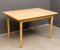 Rechthoekige eiken tafel met afgerond blad, ontwerp Knud Andersen, uitvoering Brødrene Andersen, Denemarken, circa 1970 -lichte krassen in het blad-, 73 x 120 x 80 cm