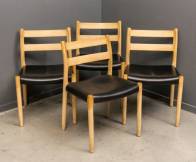 Vier eiken stoelen met zwart lederen zitting, model 84, ontwerp Niels Otto Møller, uitvoering J.L. Møllers Møbelfabrik, Denemarken, 78 x 49 x 52 cm