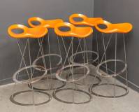 Vijf metallic oranje kunststof krukken met verchroomd draadstalen onderstel, model The Stones, ontwerp Marco Maran, uitvoering Max Design, circa 2000 -lak defecten, chroom verweerd-, 78 X 45 X 31 cm