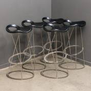 Vijf metallic blauwe kunststof krukken met verchroomd draadstalen onderstel, model The Stones, ontwerp Marco Maran, uitvoering Max Design, circa 2000 -lak defecten, chroom verweerd-, 78 X 45 X 31 cm