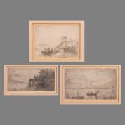 Poppe Damave (1921-1988), drie etsen: landschappen, alle gesigneerd in potlood -glas van een lijst defect-