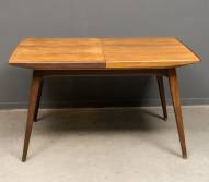 Teakhouten uitschuifbare tafel met intern een extra kantelbaar tussenblad, ontwerp Louis van Teeffelen, uitvoering WéBé, 73 x 129 x 87 cm