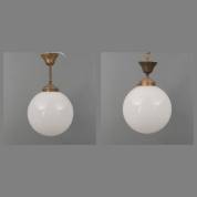 Paar plafondlampen met bolvormige opaline kappen, 40 x Ø 25 cm