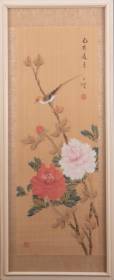 Chinese School: vogel op bloementak, gouache op zijde, gemerkt, 20e eeuw, 64,5 x 24 cm