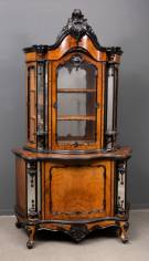 Notenhouten en gezwart houten bonheur met spiegellijsten en spiegelachterwand, Willem III, 224 x 132 x 56 cm