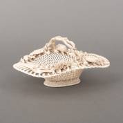 Porseleinen Parian-ware hengselmand met iriserend glazuur, de rand en het hengsel met rijk bloemdecor, uitvoering Belleek Pottery, County Fermanagh, Ierland, 1877-1884 -gelijmd-, 14 x 28 x 22 cm