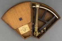 Palissander en messing octant met ivoren gradenboog, in originele houten kist, uitvoering Dolberg-Hannay, Rostock, circa 1860-'70, 36 cm