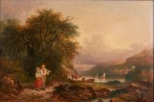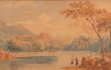 Engelse School: vissende jongens in heuvellandschap, aquarel, niet gesigneerd, begin 19e eeuw -verkleuringen-, 20 x 32 cm