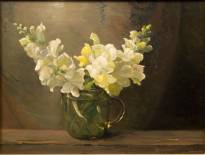 Jan Coenraad Nachenius (1890-1987), bloemstilleven met witte vingerhoedskruid, olieverf op board, gemonogrammeerd, 25 x 33 cm
