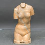 Roze marmeren beeld: vrouwentorso, draagt naamplaatje Franco Donati, tweede helft 20e eeuw -randschilfer in hals-, 64 cm