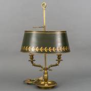 Tweelichts messing bouillottelamp met beschilderde metalen kap, 56 cm