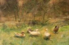 Willem Maris (1844-1910), eenden in het gras, aquarel en gouache op papier, gesigneerd, 17 x 26 cm