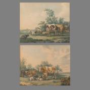 Hollandse School, twee pendanten: vee met herders in landschap, aquarel, niet gesigneerd, verso toegeschreven aan Egbert van Marum (1746-1816), 33 x 41 cm