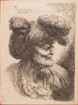 Giovanni Benedetto Castiglione (1611-1675), portret van oudere man en profil met een tulband op zijn hoofd, ets, 1645, gesigneerd in de druk, uit de serie 'Kleine studies van hoofden met Oosterse hoofdtooien', 11,5 x 9 cm