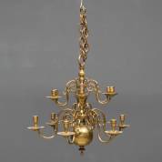 Twaalflichts messing bolkroon, 19e eeuw -schalen doorboord, enkele pinnetjes vervangen-, 62 x Ø 64 cm