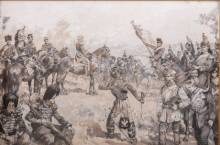 Franse School: overgave van Keizer Napoleon III na de slag bij Sedan, gouache op papier, onduidelijk gesigneerd Ch. Belli[...], 30 x 46 cm