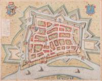 Ingekleurde gravure: 'Venloa', uit: 'Novum ac magnum theatrum urbium Belgicae regiae et foederatae', Joan Blaeu, Amsterdam, 1649 -gevlekt-, 43 x 54 cm