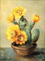 Jan Schonk (1889-1976), cactus in bloei, marouflé, gesigneerd -restauratie-, 38,5 x 28,5 cm