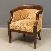 Mahonie kuipstoel, de rood-beige bekleding met florale motieven, biedermeier -gebruikssporen-, 69 x 56 x 56 cm