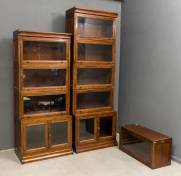 Houten stapelbare boekenkast met glazen deurtjes, bestaande uit twee basiscompartimenten en acht stapelcompartimenten, Globe Wernicke-stijl, 241 x 84 x 46 cm