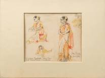 Georg Rueter (1875-1966), studieschets: 'De Indiase Danseres Mobini Devi in het Tropen Museum te Amsterdam', potlood en pastelkrijt op papier, gesigneerd en gedateerd 1956, 18 x 21,25 cm