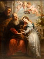 Schilderij: de Annunciatie, olieverf op doek, niet gesigneerd -gedoubleerd, restauraties-, 98,5 x 73,5 cm