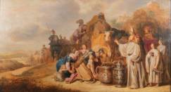 Gerrit Claesz. Bleker (1592/'93-1656), de ontmoeting van Abraham en Melchizedek, olieverf op paneel, gesigneerd en gedateerd 1634 -paneel geparquetteerd, restauraties-, 50 x 90,5 cm