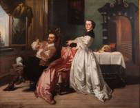 Casimir van den Daele (1818-1880), de behulpzame echtgenoot, olieverf op paneel, gesigneerd, 68 x 88 cm
