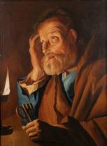 Hollandse School: boetvaardige Petrus, olieverf op paneel, naar Matthias Stom (circa 1600-na 1649), niet gesigneerd -defecten aan paneel-, 74 x 54,5 cm