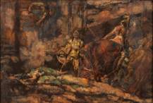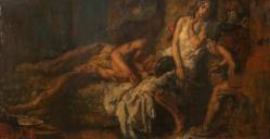 Johannes Hendrikus Jurres (1875-1946), 'Samson en Delilah', olieverf op doek, gesigneerd, 44 x 85 cm