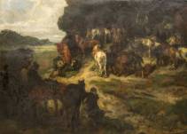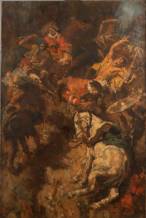Johannes Hendrikus Jurres (1875-1946), 'De Steeniging van Don Quichote', olieverf op paneel, gesigneerd, 71 x 46 cm