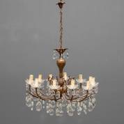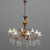Twaalflichts verguld metalen pegelkroon -enkele pegels manco, losse pegels bijgevoegd-, 110 x Ø 68 cm