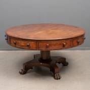 Mahonie drumtable op klauwpoten met wieltjes, Engeland, circa 1820, herkomst: Axel Vervoordt, Ref. 0100.301, juni 2003 -lichte fineerschade poot-, 75 x Ø 137 cm