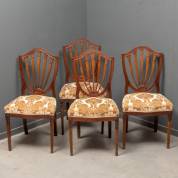 Vier mahonie korenaarstoelen met beige velours zitting, 19e eeuw, 95 x 58 x 50 cm