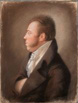 Hollandse/Europese School: portret van een man met oorring in het oor en hand in de jas, pastelkrijt op papier, circa 1800 -geplakt op glasplaat-, 37,5 x 28 cm