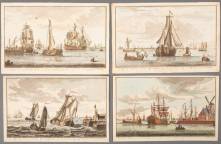 Vier ingekleurde gravures van schepen, door Petrus Schenk, circa 1700 -foxing-