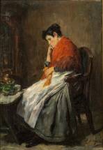 Baruch Lopes de Leao Laguna (1864-1943), peinzende vrouw, olieverf op doek, gesigneerd -gedoubleerd en deukje in doek-, 48,5 x 33,5 cm