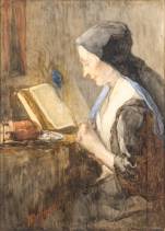 Christoffel Bisschop (1828-1904), portret van een lezende vrouw, aquarel, gesigneerd, 34 x 24,5 cm