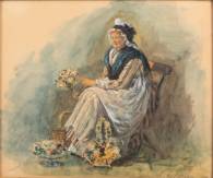Hendrik Maarten Krabbé (1868-1931), bloemenverkoopster, aquarel, gesigneerd, 21,5 x 26 cm