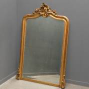 Verguld houten schouwspiegel met rocaillevormige kuif, eind 19e eeuw, 137 x 92 cm