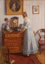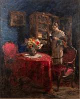 Robert Scheffer (1859-1934), elegante dame in een interieur, olieverf op doek, gesigneerd en gedateerd 1922, 77,5 x 56 cm
