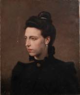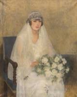 Ferdinand Gustaaf Willem Oldewelt (1857-1935), bruidsportret van Maria Jacoba (Miek) Boeschoten (1904-1992), olieverf op doek, gesigneerd en gedateerd 1922 -restauratie, dient opnieuw bespannen te worden-, op 20 oktober 1922 vond haar huwelijk met Frans Knipscheer Siebert Coster (1897-?) plaats te Kortenhoef, 103 x 83 cm