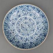 Chinees porseleinen diepe schotel met blauw-wit bloemdecor, gemerkt, Ming, 16e eeuw -minieme randschilfers-, Ø 32 x 6 cm