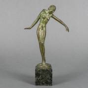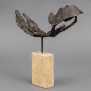 Ineke van Dijk (1940), vliegende vrouw, gepatineerd brons op travertin basement, gesigneerd aan onderzijde basement, 28,5 cm