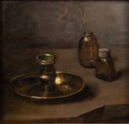 Jan Coenraad Nachenius (1890-1987), stilleven met blakertje, olieverf op paneel, gemonogrammeerd, 14,5 x 14,5 cm