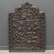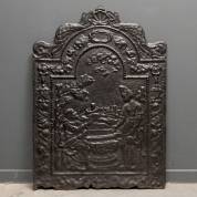 Gietijzeren haardplaat met reliëfdecor: Jezus met Samaritaanse vrouw bij de waterput, 17e eeuw -gebruikssporen-, 90 x 66 cm
