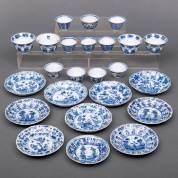 Veertien Chinees porseleinen kommetjes en tien schoteltjes met verschillende blauw-witte decors, alle Kangxi -defecten-
