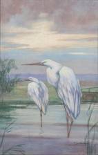 Abert Klein Sprokkelhorst (1887-1968), twee zilverreigers, pastel, gesigneerd, 56,5 x 36,5 cm