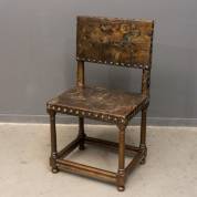 Notenhouten stoel met goudleer zitting en rug, goudleer circa 1700, stoel vermoedelijk van later datum -samengesteld-, 93 X 51 X 43 cm